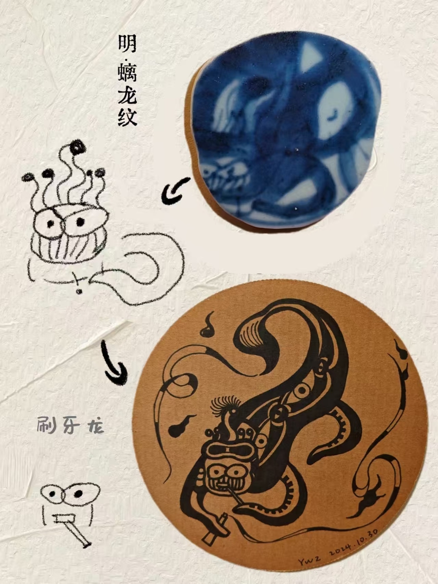 尹文正以瓷片纹样为灵感,开展二次创作。受访者供图